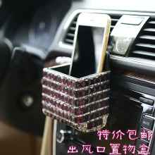 汽车出风口置物袋桶储物盒车载手机袋镶钻贴水钻苹果6收纳袋挂袋