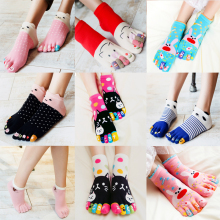 日系卡通女士五指袜 新款女士中筒纯棉五指袜 五指袜纯棉女款
