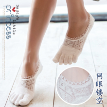 韩 竹节棉隐形纯棉网眼透气隐形五指袜蕾丝网眼五指袜船袜女