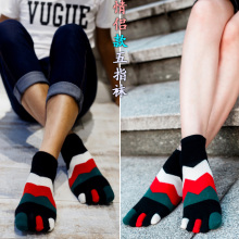 韩 四季可爱中筒纯棉女五指袜 女款全棉五指袜 抗菌防臭五指袜