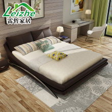 雷哲现代简约榻榻米床真皮床1.8米皮床主卧双人床皮艺床软床婚床
