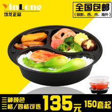 饮龙一次性快餐盒饭盒加厚塑料圆形三格四格打包外卖快餐盘多格