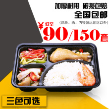 饮龙带盖大四格餐盒/一次性加厚加深便当碗/塑料外卖套餐盒打包盒
