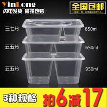 饮龙带盖大三格餐盒/一次性加厚加深便当碗/塑料外卖套餐盒打包盒
