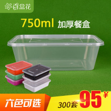 650ml高档一次性餐盒长方形透明黑白彩色外卖快餐饭盒打包碗300套