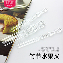 喇叭花 一次性塑料叉月饼叉水果刺两齿竹节果叉透明果叉果签400支