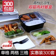 高档一次性内衬打包盒多格便当盒双层两格三格外卖盒黑色整箱包邮