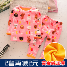 儿童保暖内衣套装黄金绒加厚宝宝睡衣1-2-3-4-5岁女童家居服小孩