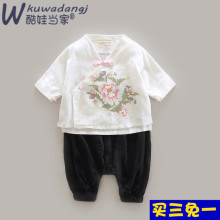 2017新款男童短袖1-2-3-4岁半小女童夏装宝宝套装两件套棉麻汉服