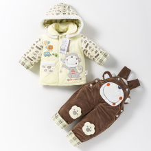 2015秋冬装新款婴儿棉衣背带裤套装 宝宝冬季外出衣服 6-9-12个月