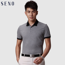 Seno春夏男士短袖T恤时尚休闲男装韩版商务撞色翻领灰色POLO衫潮