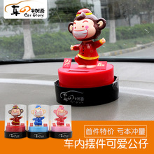 车之物语太阳能摇头汽车摆件可爱卡通小猴子车内装饰用品车载公仔