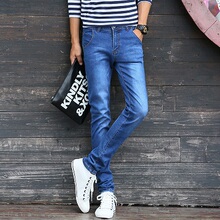 春季新款弹力牛仔裤男生韩版修身小脚男士紧身长裤青少年男裤子