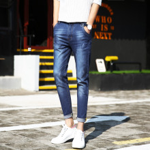春夏季九分牛仔裤男士小脚裤青少年弹力修身韩版潮流男装学生裤子