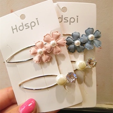 清仓折扣特价 韩国时尚百搭花瓣闪钻两件套珍珠 一字边夹BB夹女潮