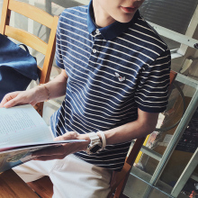 夏季新款青少年韩版修身半袖体恤男士条纹POLO衫翻领短袖T恤男潮
