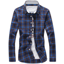 匡忆15秋季韩版修身型寸衫青年薄款加大码格子衬衣男长袖衬衫男装