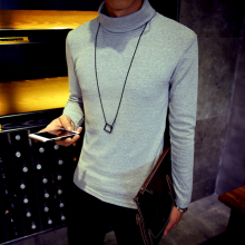 秋冬季新款修身青少年潮韩版毛衣男装针织衫纯色高领打底衫男薄款