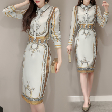 2017韩版夏装新款时尚印花娃娃领上衣+中长款半身裙两件套连衣裙