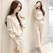 2017春装新款韩版女装雪裸色衬衫上衣+宽松休闲阔腿裤裙裤套装女