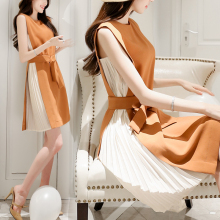 欧洲站2017夏季新款女装雪纺大码A字宽松百褶风琴系韩版连衣裙女
