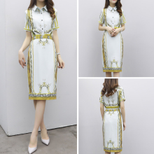 2017夏装新款韩版女装欧根纱真丝中长款A字印花修身时尚女连衣裙
