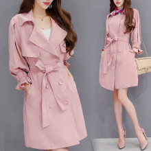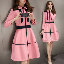 2017春装新款韩版修身女装粉色A字裙中长款长袖风衣连衣裙女潮