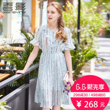 碎花雪纺连衣裙 香影2017夏新款甜美荷叶边百褶收腰裙子女中长款