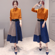 2017春装新款女装韩版长袖连衣裙两件套过膝套装裙名媛气质长裙女