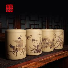 冠兴 宜兴紫砂茶叶罐 储茶罐普洱罐大号 全手工刻绘十饼收藏精品