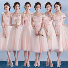 名尚纱新款伴娘服韩版伴娘团短裙姐妹裙中长款粉色礼服毕业礼服夏