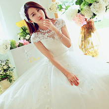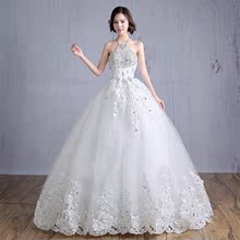 婚纱礼服 拖尾婚纱2017新款春夏款蕾丝水钻韩版抹胸绑带长拖尾