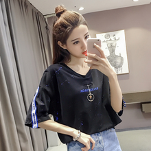 夏装新款韩版宽松短袖T恤女学生半袖体恤露肩打底小衫百搭上衣潮