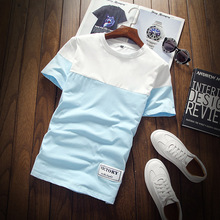 潮流男装修身短袖t恤日系男韩版字母休闲圆领T恤拼接半袖衫夏学生