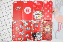 红色开运招财猫iphone6 7代手机壳苹果6plus全包边软硅胶5s麻将壳