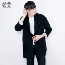 碧舍男装青年韩版中长款宽松风衣韩版个性男士外套薄款西装领大衣