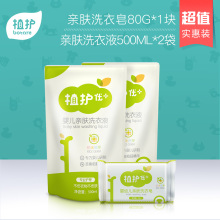 植护婴儿洗衣液补充装500ml*2+洗衣皂80g 搭配宝宝洗衣组合
