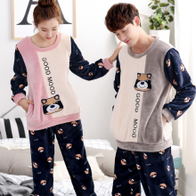 情侣睡衣秋冬季长袖韩版卡通套头加厚法兰绒珊瑚绒男女套装家居服