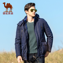 骆驼男装冬季男士无帽立领商务休闲加厚外套纯色羽绒服男