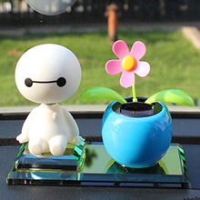 太阳能自动摇摆太阳花摇头水晶摆件汽车摆件大白车载摆件摇头摆件