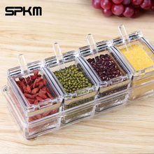 亚克力玻璃调味罐套装 创意调味瓶调料罐四件套 欧式调料盒带勺