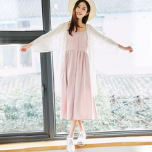宿本春装新款文艺宽松显瘦落肩袖粉色针织衫女开衫中长款毛衣外套