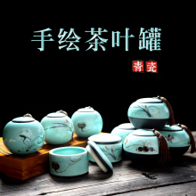 言艺茶叶罐手绘陶瓷功夫茶具茶道配件青瓷存储密封普洱储存罐茶道