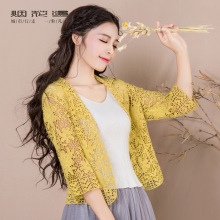烟花烫JY2017夏装新款女装百搭简约镂空针织衫开衫外搭上衣 遇见