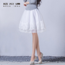 烟花烫JY2017夏季新款女装甜美百搭白色玻璃纱半身裙短裙 梨雪