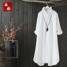 西缺原创 文艺范简约衬衣 中长款宽松棉麻衬衫女夏季新款开衫上衣