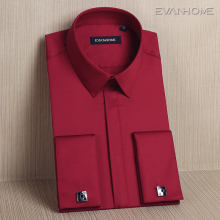 艾梵之家纯棉酒红色衬衫男士长袖新郎结婚法式袖扣修身韩版衬衣