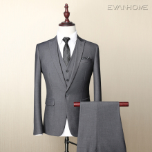艾梵之家春季新款商务职业西服套装修身正装三件套纯灰色男士西装