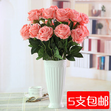 特价单支玫瑰花 仿真花绢布假花客厅餐桌落地装饰花花束 5支包邮
