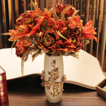 欧式假花仿真花装饰花套装摆件客厅花瓶摆设花艺插花红色绢花花束